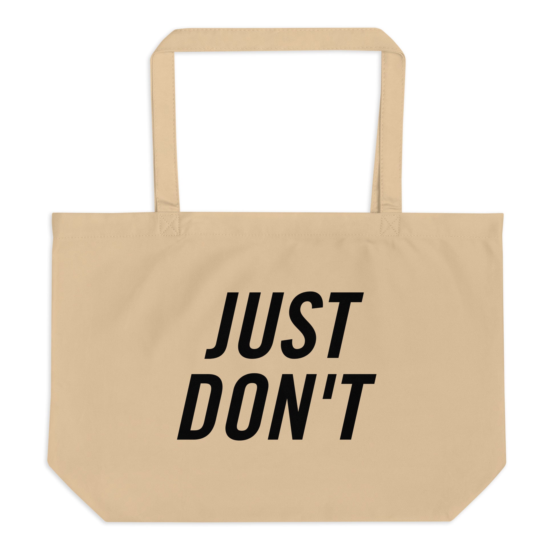 Step out with attitude — and a conscience. This roomy organic cotton tote makes a bold, funny statement while keeping things eco-friendly. Sturdy enough for groceries, books, and everyday essentials, with a smooth solid canvas that makes the JUST DON’T design pop. Perfect for gifts, errands, or simply flexing your anti-slogan energy.