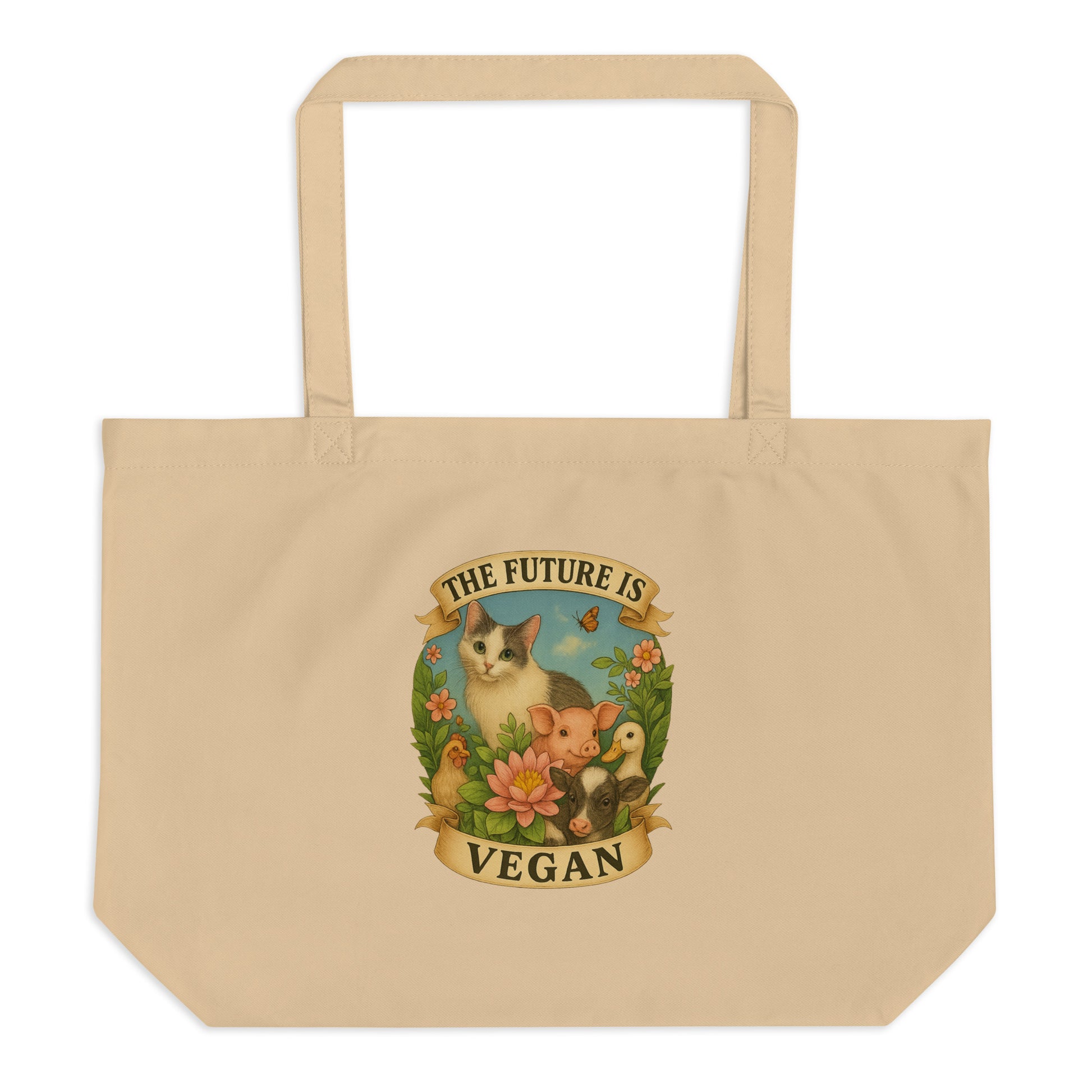 A soft vintage-style illustration with a bold message. Made for market days, book hauls, and anyone who believes compassion is always in style. Carry your essentials — and your values. This tote is designed for animal lovers, plant-based dreamers, and gentle rebels who know the future really can be different